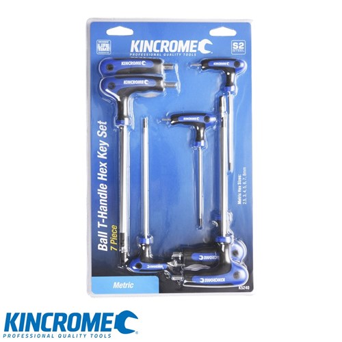 The Kincrome T-Handle Set is made from S2 steel and is ideal for users with experincewho prefer the speed and convenience of the T-Handle design. Featuring Ball-end for25 degree angle entry, a long shaft and moulded grip handles.