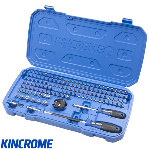 This 128 Piece Master Bit Set includes just about any bit type and size that you are likely to encounter, and also includes a handy storage blow moulded case (BMC) to keep your bits together, and can act as a storage tray for your tool box simply by cutting the hinges to remove the lid.