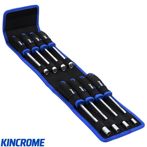 Kincrome's Torque Master 8 Piece Nut Driver Set features polished chrome shafts and colour coding for easy identification. All screw drivers are manufactured from S3 hardened, tempered, alloy steel for durability. The 8 piece kit also includes a convenient storage wallet.