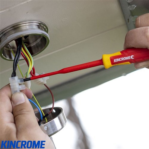 The Kincrome TorqueMaster® VDE Screwdrivers are engineered for safe and efficient electrical work, offering exceptional performance in high-voltage environments. VDE certified for up to 1,000V AC and 1,500V DC, these screwdrivers are built with precision-machined S3 SVCM Alloy Steel blades for durability and reliability. The Tri-Lobe handle design provides a comfortable grip, dovetailing with the hand for increased torque and turning power, while the Gel-Grip offers up to 50% more turning power than conventional screwdrivers. Featuring slim insulated shafts, magnetic tips, and drive indicators for easy identification, this set ensures enhanced safety and convenience for professionals. Tested at 10,000V to meet the DIN EN IEC 60900:2018 standard, it's ideal for electrical work on live systems, providing peace of mind with every use.
