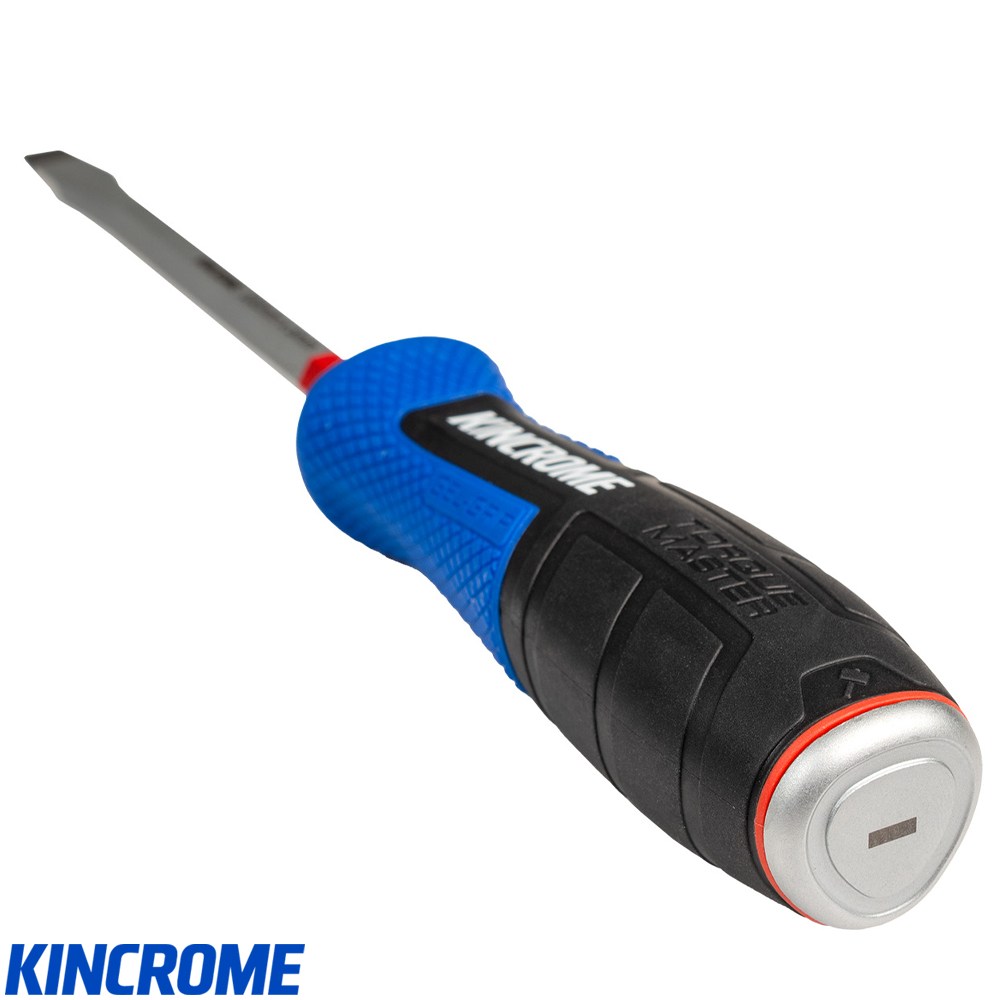 TorqueMaster® represents decades of fastening innovation. Featuring a Tri-Lobe design that dovetails with the hand, Gel-Grip for increased torque, and precision-machined S3 SVCM Alloy Steel blades for durability, this screwdriver is built for professionals. Colour coding and drive indicators make it easy to identify the tool at a glance, while the continuous Thru-Tang shaft with striking end cap withstands hammer blows. Powder-coated shafts add extra durability for long-lasting performance. TorqueMaster® – the screwdriver perfected.