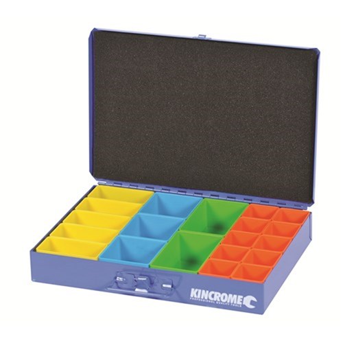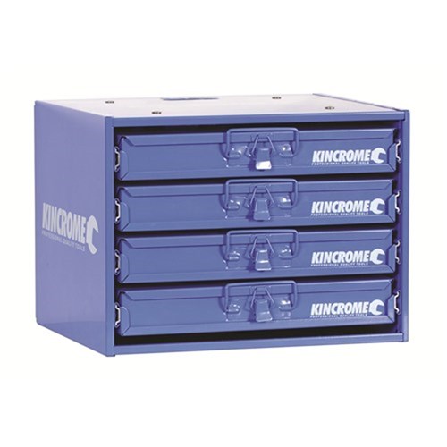 Kincrome multi-storage case 4-drawer system. UV stabilised powder coated finish. 4 Friction slide drawer cradles (holds 4 Multi Storage Cases). Internal rear locking system to prevent drawers from accidentally opening. Can be mounted to Walls, Vans, Uteâ??s, Under Bencs and stacked. 20 Removable Coloured Storage Tubs. Ideal for storing Nuts, Bolts, Washers, O-rings, Screws, Nails, Rivets,Spare parts, Fuses, Grease Nipples, Eyelets & Much Moreâ?¦