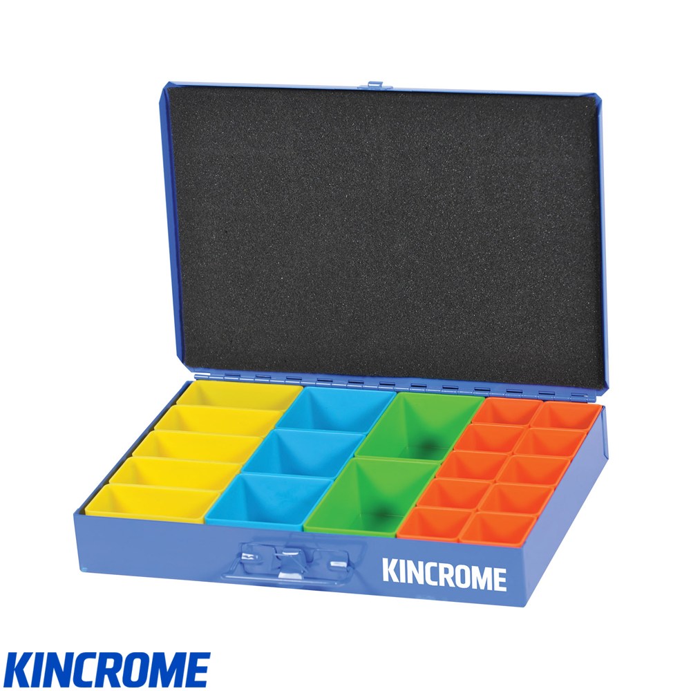 Organise your workshop, garage, or job site with the Kincrome Multi Storage Case. Built to the highest standards, this heavy-duty case keeps small parts, tools, and accessories neatly sorted and easily accessible. With 20 colour-coded, removable containers, it’s fully customisable to suit your storage needs.