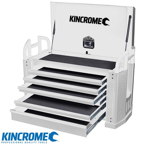 Kincrome's Off-Road Field Service Box is created to withstand the harsh Australian climate, with heavy gauge steel, waterproof seals, heavy duty ball bearing slides, a protective roll cage and corrosion resistant stainless steel hardware. The unit features integrated mounting points, feet and tie down anchors. The service box is complete with a secure T-Handle locking system and is available in a matte or gloss finish.