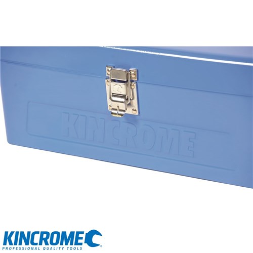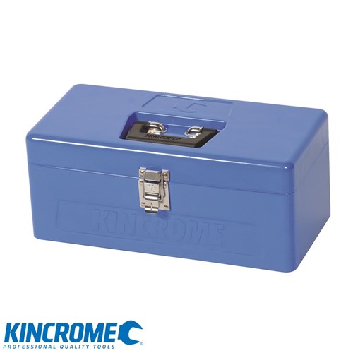 Kincrome Cantilever Tool Box with 1 tray. Made from heavy duty sheet steel, with a blue hammertone powder coated finish. Features a carry handles, chrome hasp and staple and an internal PVC cantilever tray. Measures 465mm x 208mm x 168mm.