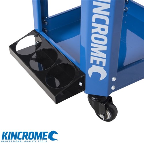 Features 60mm vinyl foam seat for maximum comfort, 1 x ball bearing slide drawer (rated to 30kg), 1 x spare parts drawer, under seat storage for tools, parts & accessories, can holder for 3 cans and smooth rolling PU castors.