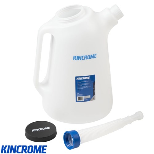 The Kincrome 8L Oil Jug is built for handling larger fluid transfer jobs with precision and ease. Made from durable, chemical-resistant polyethylene, it’s ideal for measuring and dispensing oils, coolants, and other automotive fluids. The semi-transparent body with clear measurement markings ensures accurate readings, while the ergonomic handle and precision spout deliver controlled, spill-free pouring. With its high capacity, it’s perfect for heavy-duty workshop tasks, and is also available in smaller 2L and 6L options for different applications.