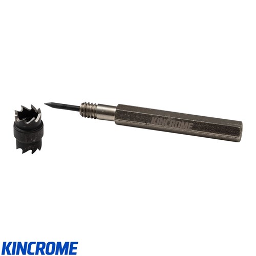 The Kincrome Spot Weld Remover is purpose-built for clean and efficient separation of metal spot-welded panels, making it an essential tool for automotive bodywork and sheet metal fabrication. It features a reversible double-ended cutting blade for extended service life and a retractable pilot tip mounted on a 1/4-inch arbor for precise positioning. Designed for use with all 1/4-inch or larger variable-speed drills, this remover is crafted from heavy-duty alloy steel to deliver long-lasting performance and reliability in demanding workshop environments.