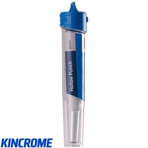 Kincrome hollow punches are perfect for punching holes a wide range of materials. The special design of the cutting edge prevents jamming of the material allowing for multiple easy cuts. The punches can cut holes in gasket material, leather, rubber, canvas, cardboard, plastic & other soft materials. The knurled finish ensures maximum grip and avoids movement while the punch is being struck.