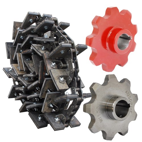 C&M aftermarket clean (main) grain chain assembly kit to fit CASE-IH® 2588 combine harvester. This kit contain 1 x chain set including paddles and 1 x upper sprocket and 1 x lower sprocket.
