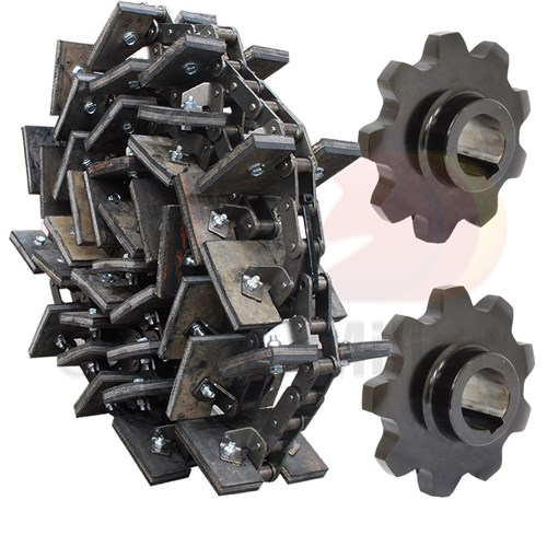 C&M aftermarket clean (main) grain chain assembly kit to fit CASE-IH 5088 combine harvester. This kit contain 1 x chain set including paddles and 1 x upper sprocket and 1 x lower sprocket.