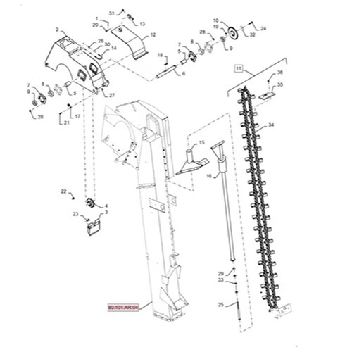 C&M aftermarket clean (main) grain chain assembly kit  to fit CASE-IH 5130 combine harvester. This kit contain 1 x chain set including paddles and 1 x upper sprocket and 1 x lower sprocket.