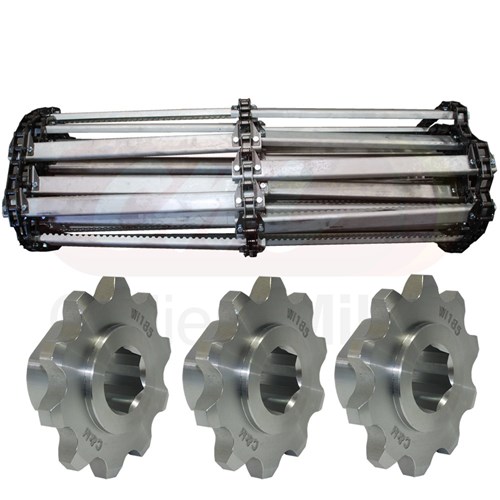 C&M aftermarket feeder house chain and sprocket kit to fit the feeder house on John-Deere® 9500 model combine harvesters. This kit contain 1 x feeder chain set including bars and 3 x feeder sprockets. Order this kit to refurbish your feeder house.