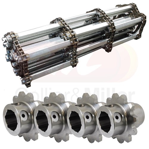 C&M aftermarket feeder house chain and sprocket kit to fit the feeder house on Massey Ferguson® 9565 model combine harvesters. This kit contain 1 x feeder chain set including bars and 4 x feeder sprockets. Order this kit to refurbish your feeder house.