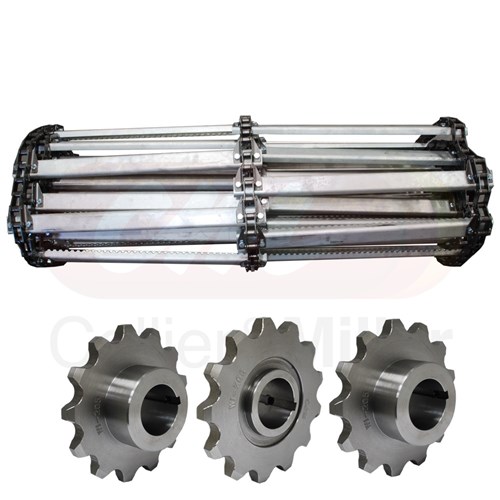 C&M aftermarket feeder house chain and sprocket kit to fit the feeder house on John-Deere® 9670STS model combine harvesters produced with serial number prior to 730100. This kit contain 1 x feeder chain set including bars and 3 x feeder sprockets. Order this kit to refurbish your feeder house.
