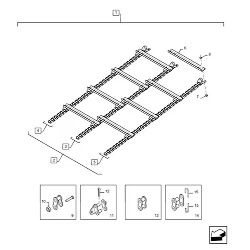 C&M aftermarket feeder house chain and sprocket kit to fit the feeder house on New Holland® CR6090 model combine harvesters. This kit contain 1 x feeder chain set including bars and 3 x feeder sprockets.