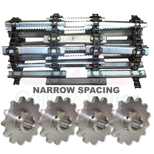 C&M aftermarket 4 strand feeder house chain and sprocket kit to fit the feeder house on AGCO Gleaner® R76 model combine harvester. This kit contain 1 x feeder chain set (including bars) and 4 x hex bore feeder sprockets. Fits feeder with 8.62" drum, order this kit to refurbish your feeder house.