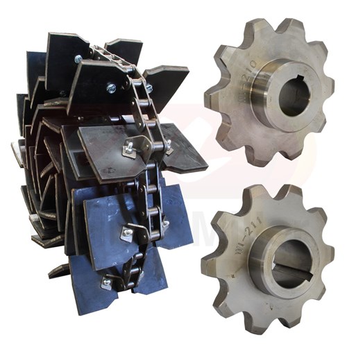 C&M aftermarket clean grain (main) chain and sprocket kit to fit the high capacity clean grain elevator on John-Deere® S790 model combine harvesters. This kit contain 1 x chain set including paddles and 1 x upper sprocket and 1 x lower sprocket.