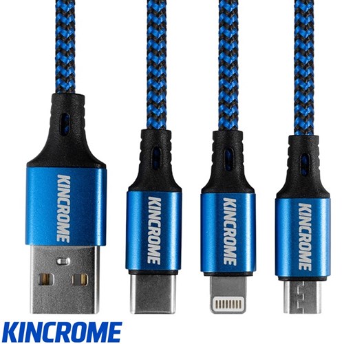 The Kincrome range of USB charging cables is designed for the everyday user to the trade professional. They feature braided sleeves and aluminum connect housings for durability and extended life in the toughest conditions. Covering most popular connection types and MFi certified (where applicable). They’re ready to ensure some of your most important tools on the job are always charged and ready to go.