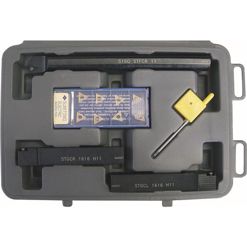 This lathe tool kit will suit all 16mm toll height machines. It contains 1 left hand turning tool, 1 right hand turning tool and 1 boring bar (all tools accept the same tungsten carbide insert). And 10 carbide inserts.