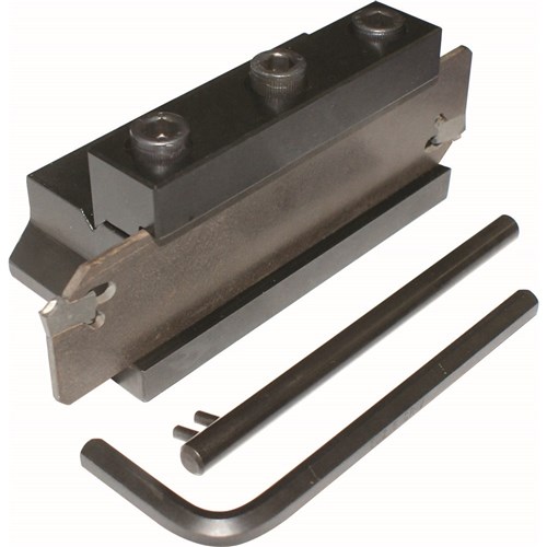 This parting off tool kit will suit any lathe of 12mm tool height. Includes 1 x 12mm Parting block suits 26mm blade height, 1 x 26 x 2mm Parting blade, 2 x 2mm Parting inserts, 1 x Key insert remover and 1 x Hex key