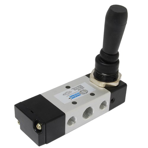 The LEL53 series are a five way three position joystick control valve. The sprung center position has closed ports so no air can be put in or exhausted from the valve (will hold your cylinder in its last position). Ideal for controlling cylinders (allows you to 'creep' your cylinder forward or back and then hold it in one spot) or pneumatic actuators simply push the lever one way or the other. Simple to use, install and maintain.