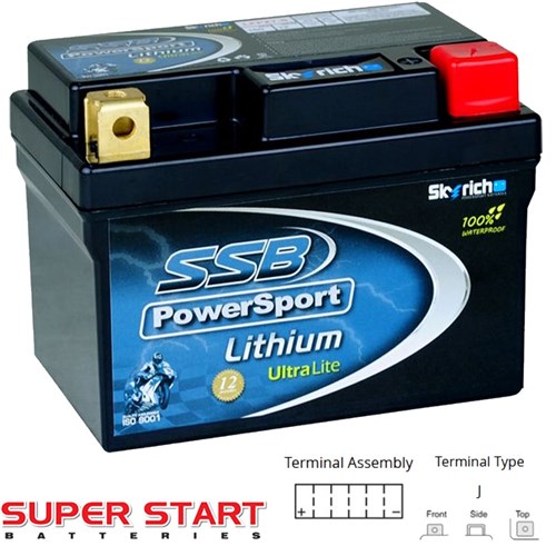 SSB PowerSport Lithium Ion UltraLite Batteries are an extremely light weight battery designed for starting applications and are a completely dry battery making them spill-proof and leak-proof.