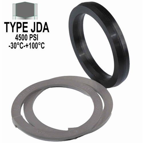 Double acting piston seal suitable for one piece pistons. Constructed from Nitrile rubber comes complete with TP117 anti extrusion rings. Commonly known as a J-Seal. Designed for light to medium applications. Operating pressure up to 4500 psi (300 bar) and pistons speeds up to 0.5m/sec.