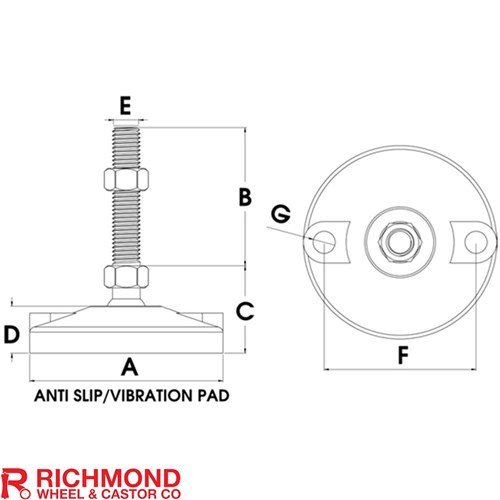 Richmond Wheel & Castor 100mm X M12 Levelling Feet Bolt Down Mild Steel