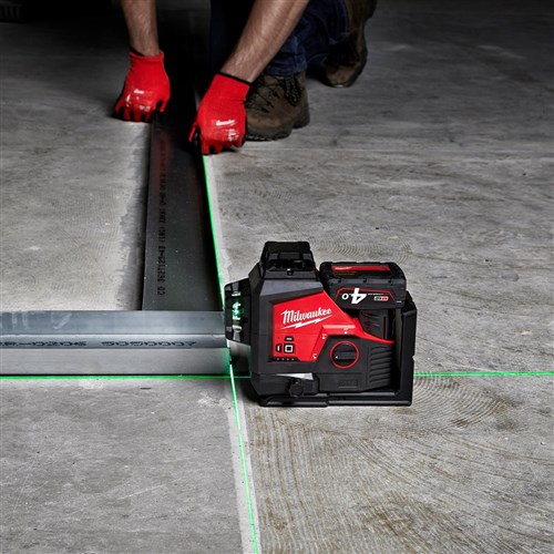 The M12™ 3 Plane Laser is your all-in-one solution for precise alignment, leveling, squaring, and transfers, allowing you to easily layout large spaces with a single tool. It projects one horizontal line and two vertical lines for quick and accurate setups. Powered by M12™ REDLITHIUM™ batteries, it provides up to 15 hours of continuous runtime with a M12B4 4.0Ah battery, ensuring consistent productivity throughout your workday. The high-intensity green laser delivers exceptional visibility up to 38 meters and is up to 4x brighter than red lasers for superior performance in long-range applications.