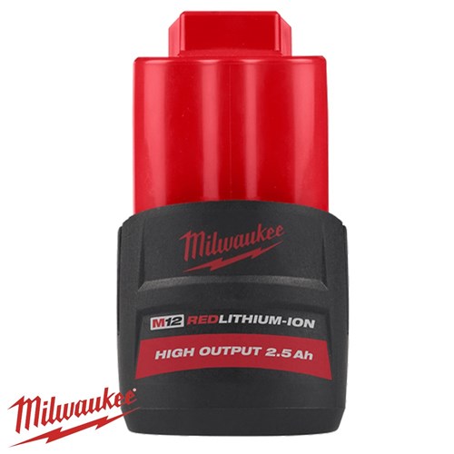 The M12 Redlithium-Ion High Output 2.5Ah Compact Battery delivers 25% more power and runs 25% cooler than the M12 Redlithium-Ion 2.0Ah Compact Battery.