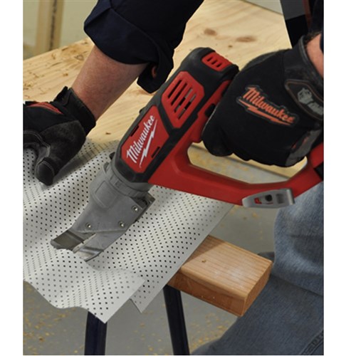 Milwaukee 18V Metal Shears. TOOL ONLY. Features a Milwaukee 4-Pole motor, RedLink intelligence electronics which ensures optimised performance and overload protection. Also features a 360 degree tool-free rotating head which means these shears can be used where hand snips have normally been needed. Ergonomic body design provides inline wrist design for easy use. Comes with a belt clip for quick and easy storage. Not designed to cut Aluminium. Batteries and charger are sold separately.