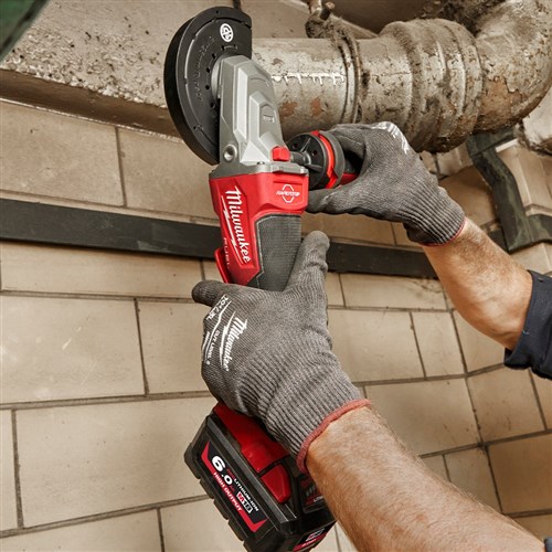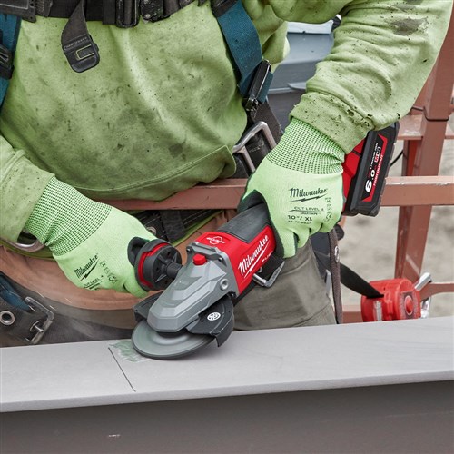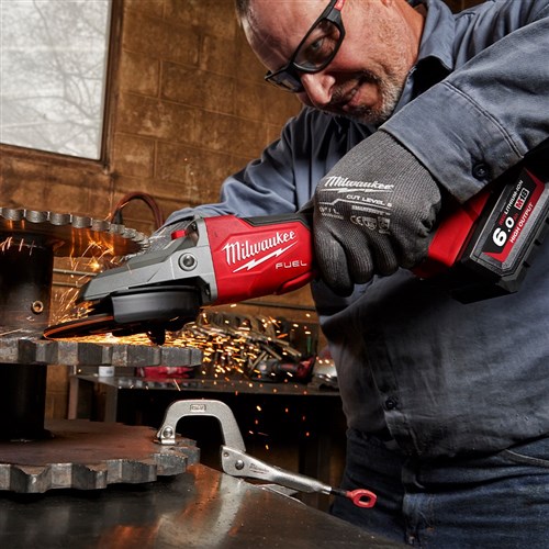 The M18 FUEL™ 125mm (5") Flathead Braking Angle Grinder with Deadman Paddle Switch is the latest addition to Milwaukee’s cordless angle grinder lineup. The M18FAGF125XPDB features a low-profile flathead design, allowing access to tight spaces at 42° angles. Its POWERSTATE™ Brushless Motor provides 8,500 RPM and maximum sustained power for tackling the toughest grinding and cutting tasks. REDLINK™ PLUS Intelligence ensures exceptional performance, protection, and compatibility.