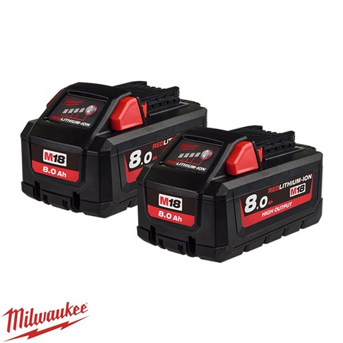 Milwaukee M18™ REDLITHIUM™ HIGH OUTPUT™ 8.0Ah Battery Twin Pack