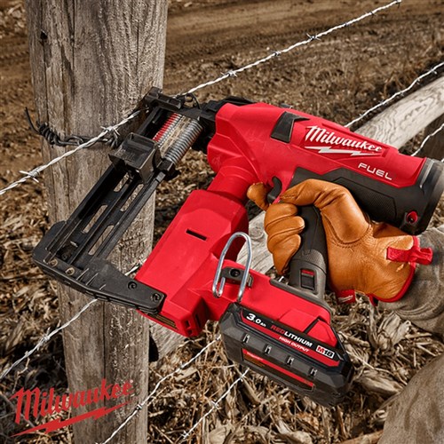 The MILWAUKEE® M18 FUEL™ Fencing Stapler delivers unmatched performance in a completely battery-powered solution. By leveraging our Nitrogen Spring technology, POWERSTATE™ Brushless motor, and REDLINK™ Intelligence, this stapler delivers the power to seat staples into the toughest Fence Post Materials. Our M18 FUEL™ Fencing Stapler provides our users maximum increase in productivity and a reduction in Peak Muscle Effort compared to Manual Staple Installation.