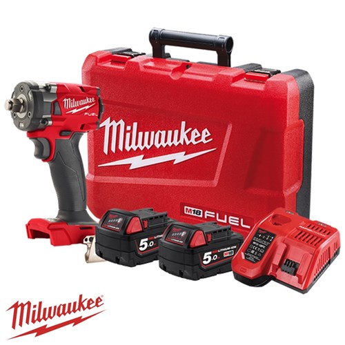 Milwaukee M18FIW2F12-0 18V 5.0Ah Li-Ion Cordless Brushless 1/2" Compact Impact Wrench with Friction RingThe M18 FUEL 1/2" Compact Impact Wrench with Friction Ring delivers maximum access in tight spaces, up to 339 Nm of nut-busting torque, and maximum workspace visibility.