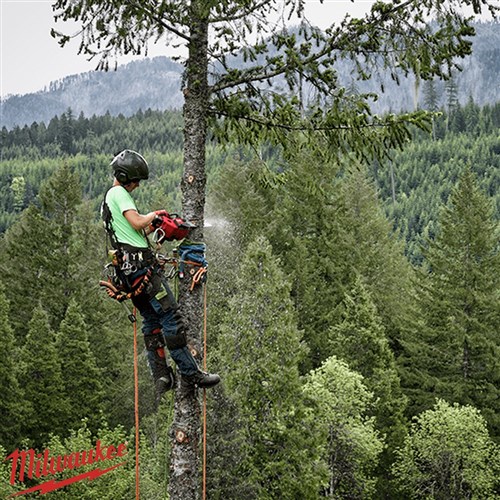 The Milwaukee M18 FUEL™ 12" Top Handle Chainsaw delivers professional-grade cutting power without the hassle of petrol engines. Ideal for arborists, utility linesmen, and landscape maintenance professionals, it combines M18 FUEL™ technology with a POWERSTATE™ Brushless Motor to provide fast throttle response, up to 2.1 kW of peak power, and 3.2 Nm of peak torque. Optimised for M18™ REDLITHIUM™ FORGE™ batteries, it can deliver up to 150 cuts per charge with an 8.0Ah battery in 4" x 4" cedar. Features like an easy-access chain tensioner, automatic oiler, metal bucking spikes, onboard scrench storage, and climbing scabbard make this chainsaw efficient, ergonomic, and ready for demanding applications.