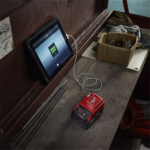 The M18 Power Source, compatible with all M18 redlithium-ion battery packs, features a powered USB port to charge cell phones, MP3 players, digital cameras, and other portable electronic devices.