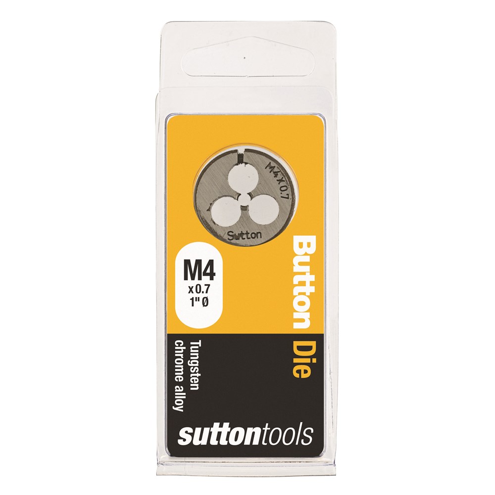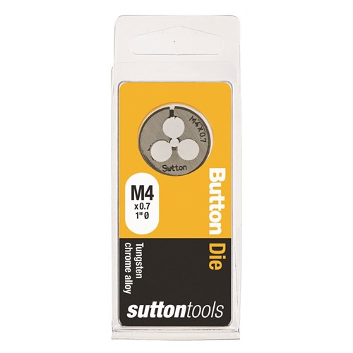 Sutton Carbon Button Dies, Metric Coarse, 1" OD. A Button Die is used for cutting a new male/external thread on studs. Made from Tungsten Chrome Alloy these Button Dies and are not suitable for precision, safety or critical thread but are ideal for general purpose and DIY use in non-ferrous metals & plastics.This solid round die fits into an adjustable guide or plain dies stock handle.