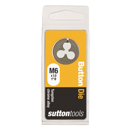 Sutton Carbon Button Dies, Metric Coarse, 1" OD. A Button Die is used for cutting a new male/external thread on studs. Made from Tungsten Chrome Alloy these Button Dies and are not suitable for precision, safety or critical thread but are ideal for general purpose and DIY use in non-ferrous metals & plastics.This solid round die fits into an adjustable guide or plain dies stock handle.