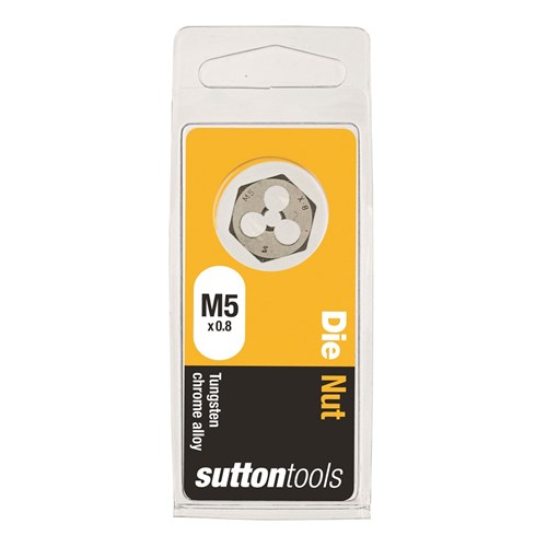 Sutton Carbon Die Nuts, Metric. A Die Nut is designed for cleaning and resizing existing damaged threads. Made from Tungsten Chrome Alloy these Die Nuts and are not suitable for precision, safety or critical thread but are ideal for maintenance, repair work and general purpose use in non-ferrous metals & plastics. This hexagonal die can be used with a wrench or socket in limited space.