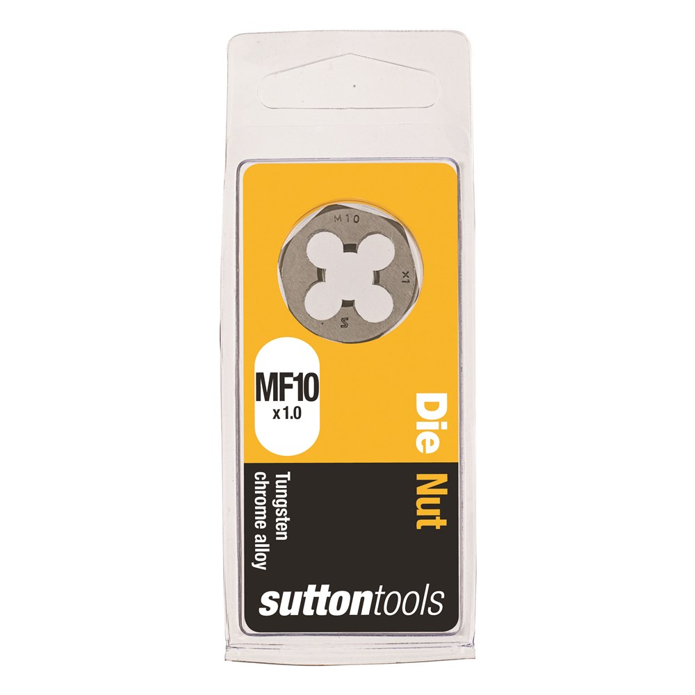 Sutton Carbon Die Nuts, Metric Fine. A Die Nut is designed for cleaning and resizing existing damaged threads. Made from Tungsten Chrome Alloy these Die Nuts and are not suitable for precision, safety or critical thread but are ideal for maintenance, repair work and general purpose use in non-ferrous metals & plastics.This hexagonal die can be used with a wrench or socket in limited space.