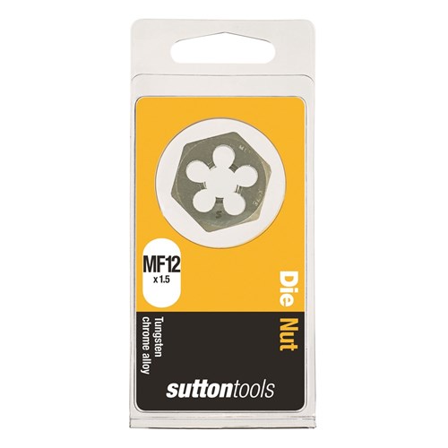 Sutton Carbon Die Nuts, Metric Fine. A Die Nut is designed for cleaning and resizing existing damaged threads. Made from Tungsten Chrome Alloy these Die Nuts and are not suitable for precision, safety or critical thread but are ideal for maintenance, repair work and general purpose use in non-ferrous metals & plastics.This hexagonal die can be used with a wrench or socket in limited space.