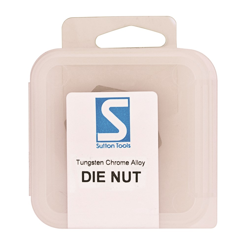 Sutton Carbon Die Nuts, UNF. A Die Nut is designed for cleaning and resizing existing damaged threads. Made from Tungsten Chrome Alloy these Die Nuts and are not suitable for precision, safety or critical thread but are ideal for maintenance, repair work and general purpose use in non-ferrous metals & plastics. This hexagonal die can be used with a wrench or socket in limited space.
