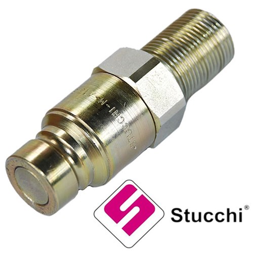 Stucchi A-Series Flat Face male nipple to ISO 16028 standard. This coupling is a suitable replacement for Caterpillar Skid Steer machines where the coupling must have a 1" ORFS male connection. The flat face couplings provides the perfect solution in dirty and demanding environments.