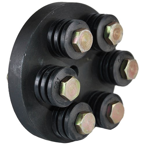 GB Cone Ring couplings transmit the load from one member to the other by means of a number of steel pins fitted with multiple, conical section Flexirings. Pin half comes complete with pins and rubbers. By convention the pin half is mounted on the driven shaft.