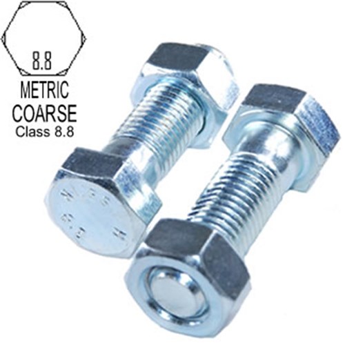 ISO Metric Coarse Class 8.8 Hex Head Fastener, ISO Metric coarse pitch thread to (AS1110.1/AS1110.2/AS4291.1). Supplied as Zinc Plated Bolt & Nut Assembly, can be purchased each or in box quantities.