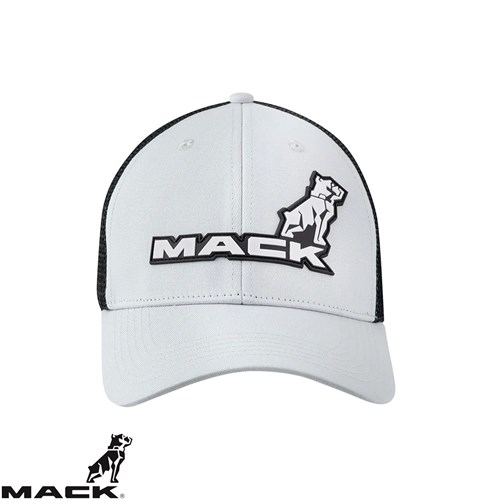 The Mack 2 Tone Curved Brim Trucker Cap offers a stylish and structured look with its 6-panel crown and contrasting grey front panel featuring embroidered eyelets for added ventilation. The black polyester mesh back panels provide breathability, while the snapback adjustable closure ensures a comfortable, secure fit. Finished with a sleek Mack silicone patch, this cap is perfect for casual wear or outdoor adventures.