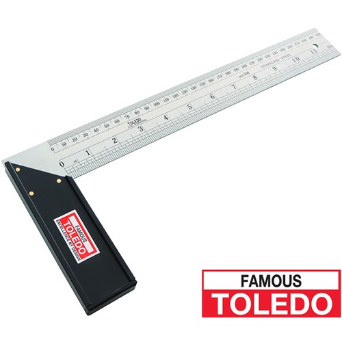 Carpenter's Mitre Squares Metric & English. Used for producing right angles in carpentry. Stainless steel blade with reinforced plastic handle. Graduated blade with metric and SAE markingsFeatures hanger hole in blade. Suitable for use as inner or outside try square, mitre square. horizontal, 45 degree marking gauge and rule. Manufactured from stainless steel