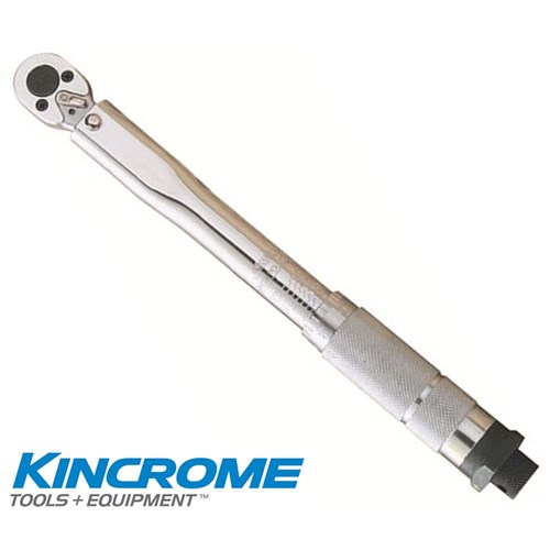 KIncrome micrometer torque wrench.1/4 square drive, with reversible ratchet head. The lb-ft and Nm scale is engraved on the barrel of the wrench. The Micrometer type sleeve allows accurate pre-set torque levels to be set. When torque is reached the wrench produces an audible click and a release of tension. Triple scale torque wrench17.7-212.4 inch/lb., 2.0 - 24.0 Nm. Easy locking Easy grip handle Contents:- 1/4 Drive Ratchet. Packaged in a blow mould case. 27.5cm in length.